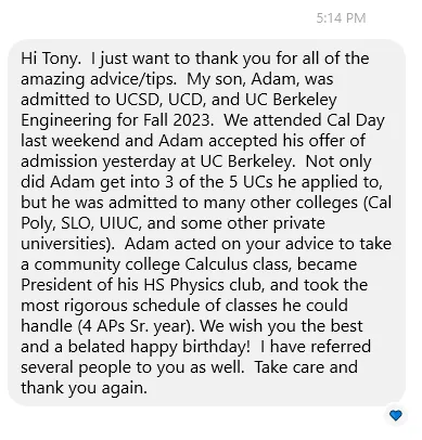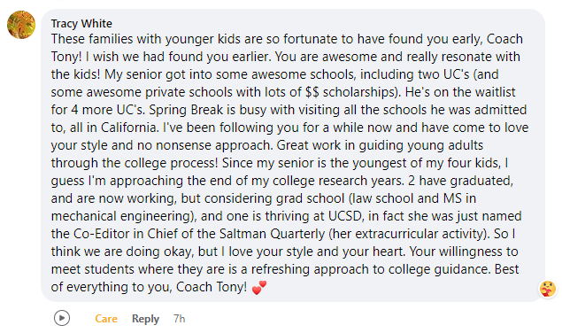 You either don’t work with us & we go on our merry way… or you do work with us and we help your child get into one of their top choice college options.